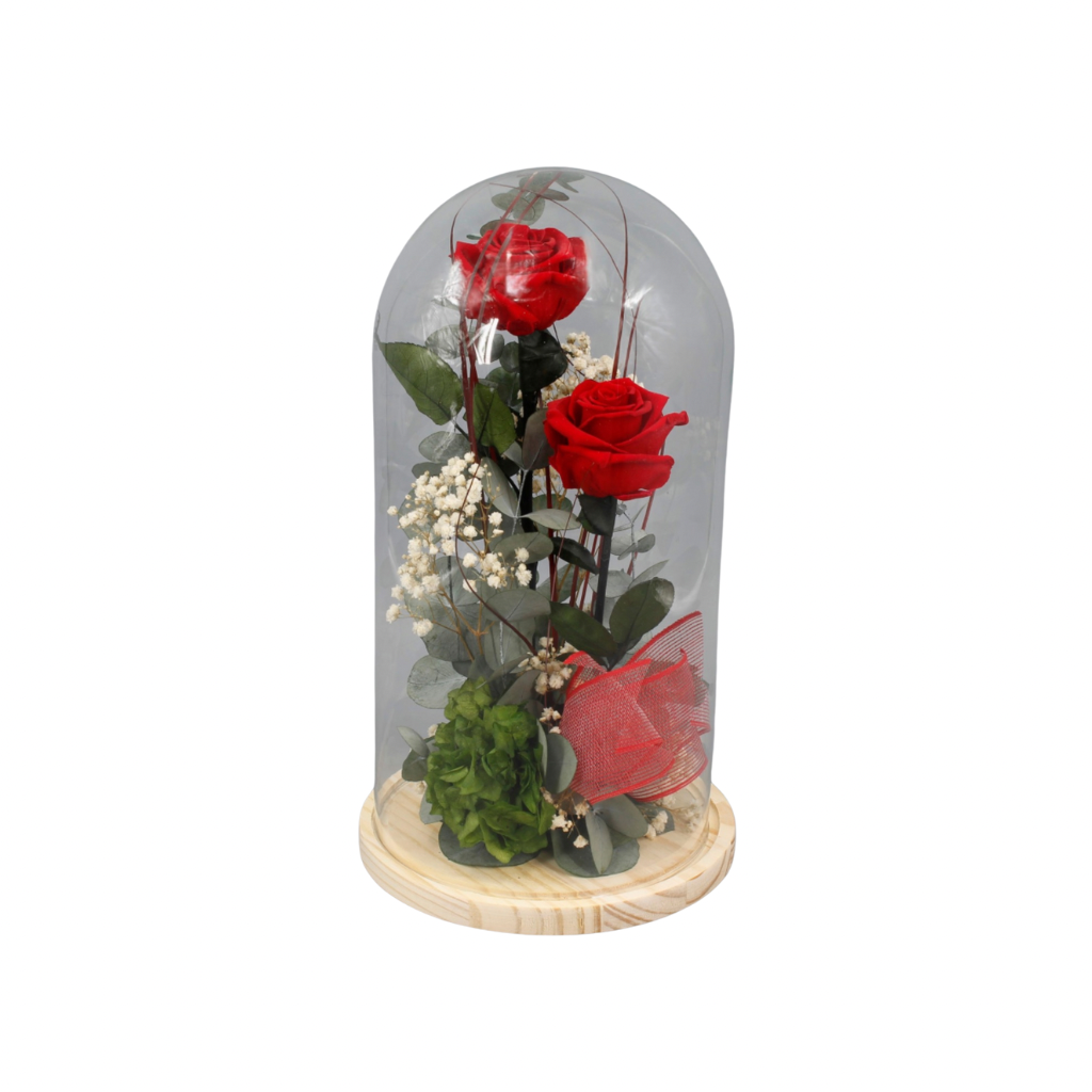 Cúpula con dos rosas rojas preservada Cúpula dos rosas rojas